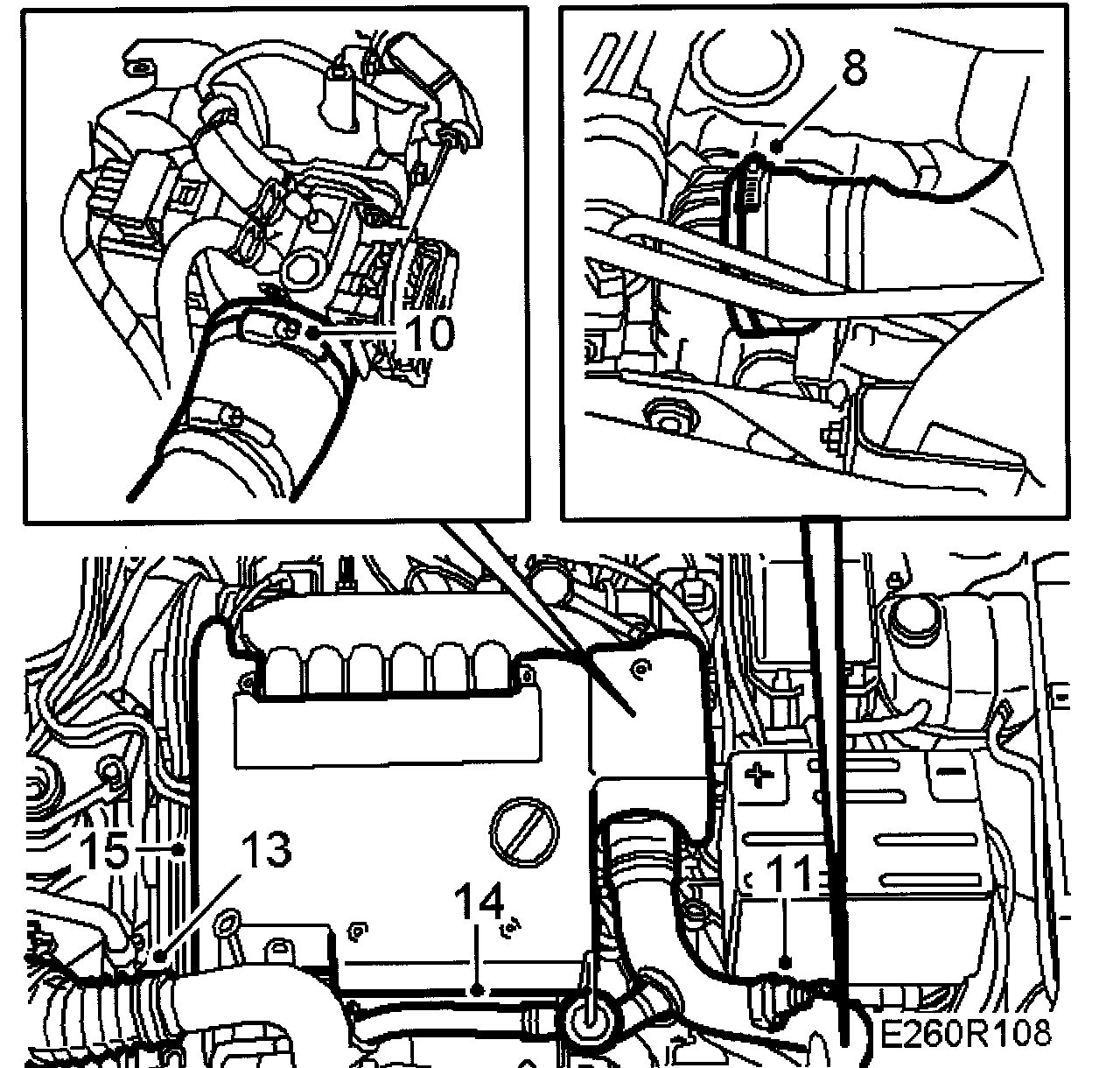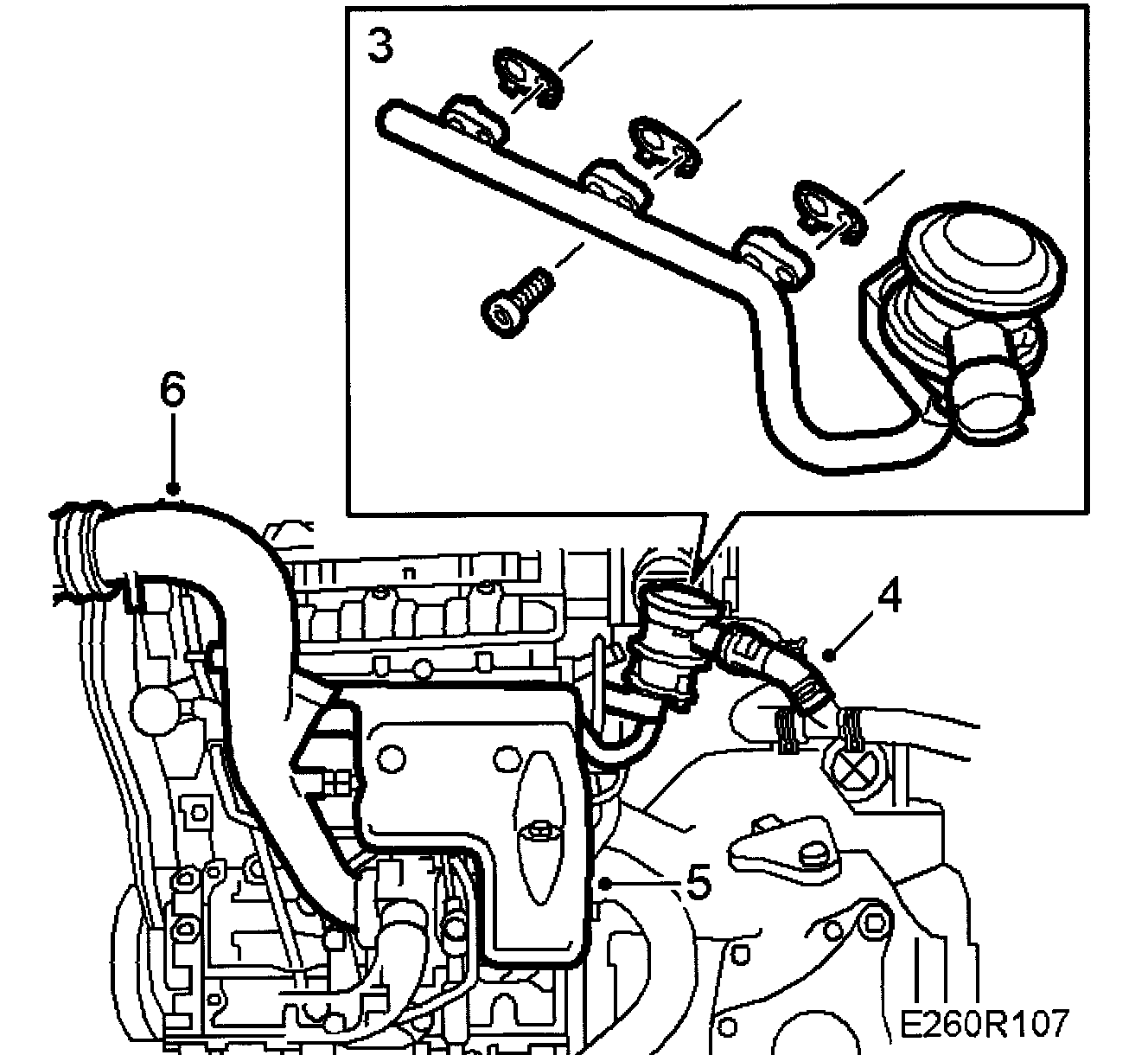 14. Fit the bypass pipe with valve using a new O-ring for the connection to the turbocharger inlet pipe.