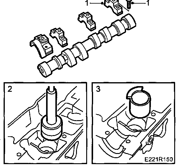 1 Remove the camshaft bearing caps by undoing the bolts in steps of 1/2 to 1 turn. It is important to conclude removal at the bearing cap where the tappets are under load. Lift out the camshafts and remove the stuffing boxes. Note the marking.