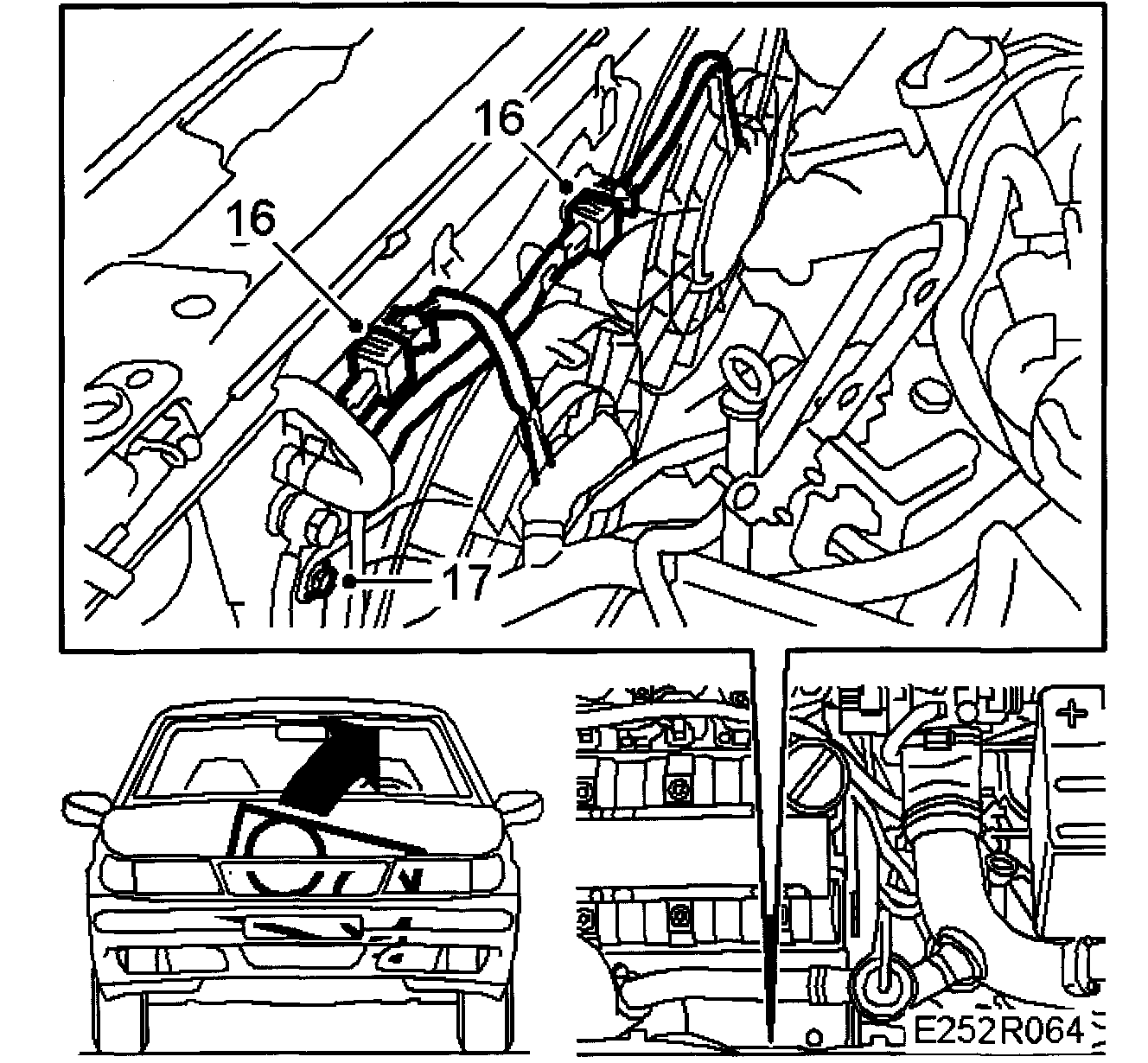 25. Raise the car and remove the plug in the charge air cooler outlet. 26. Connect and tighten the turbocharger delivery pipe hose clip to the charge air cooler.