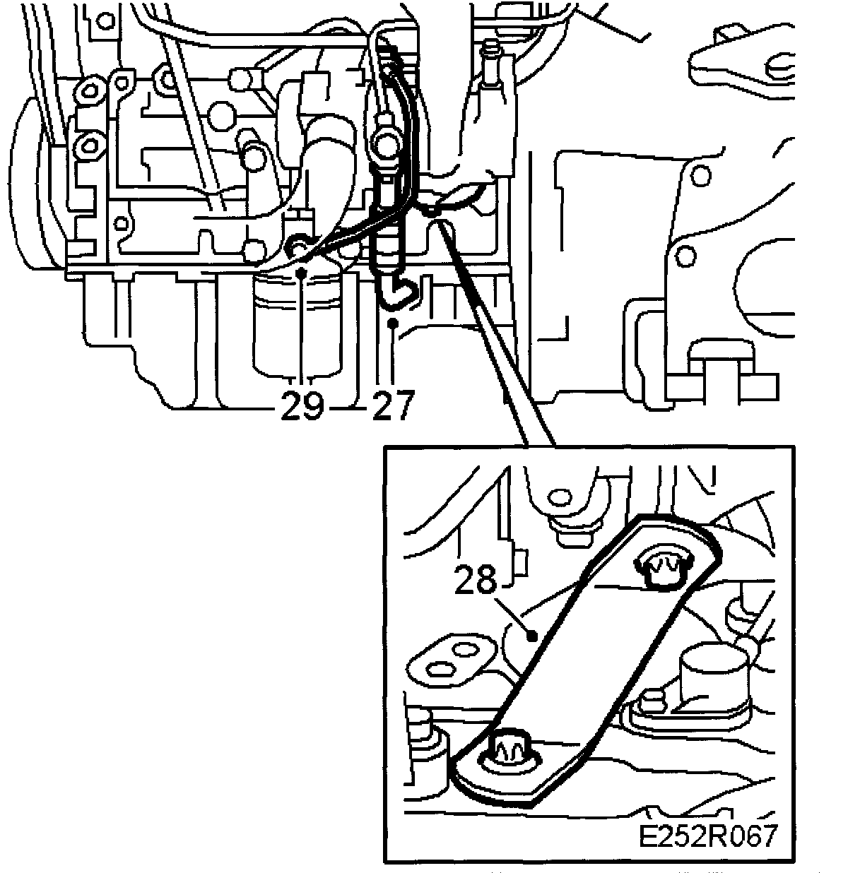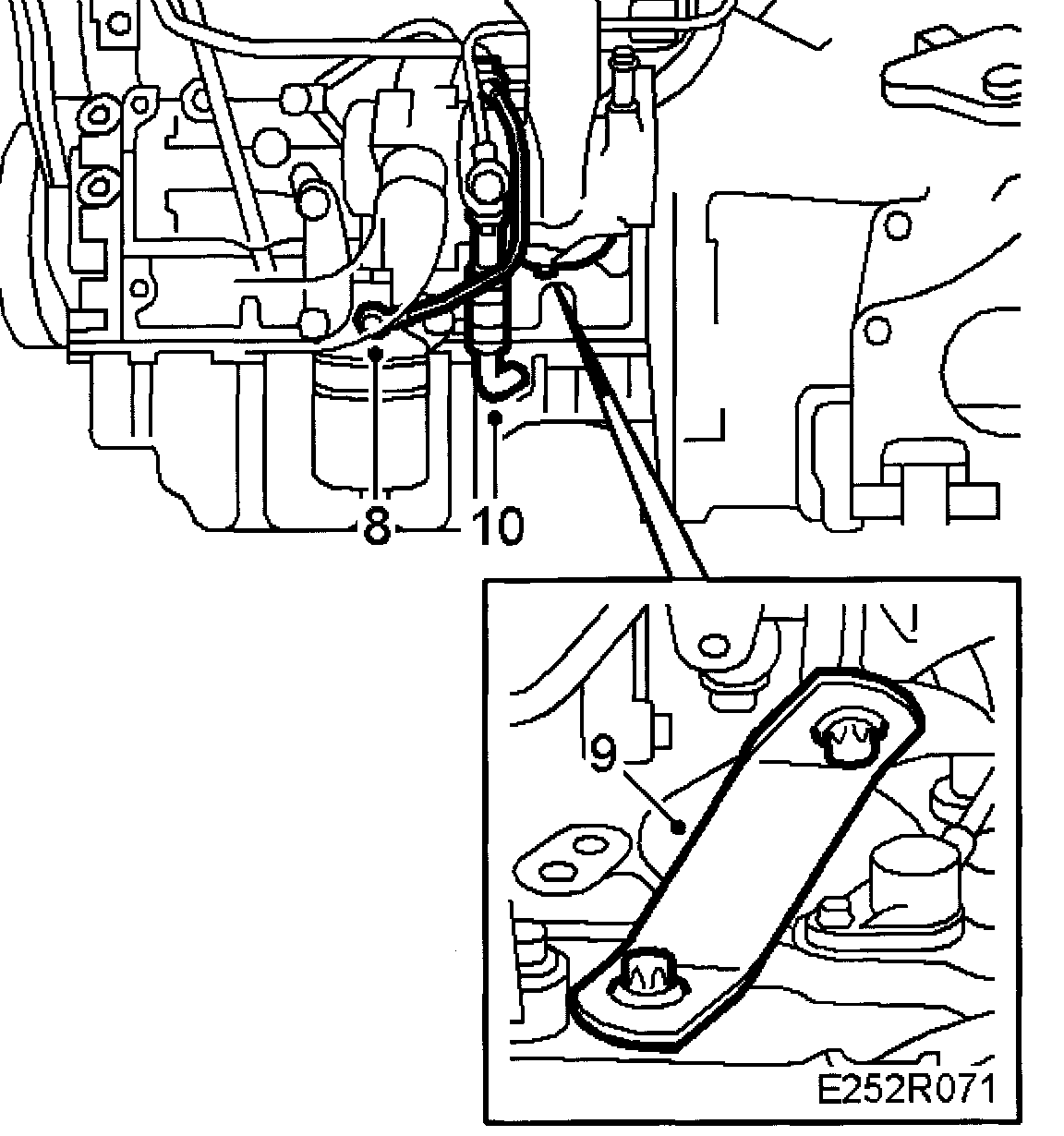 8. Fit the oil pipe to the oil filter adapter. Fit new gaskets and sealing washers.