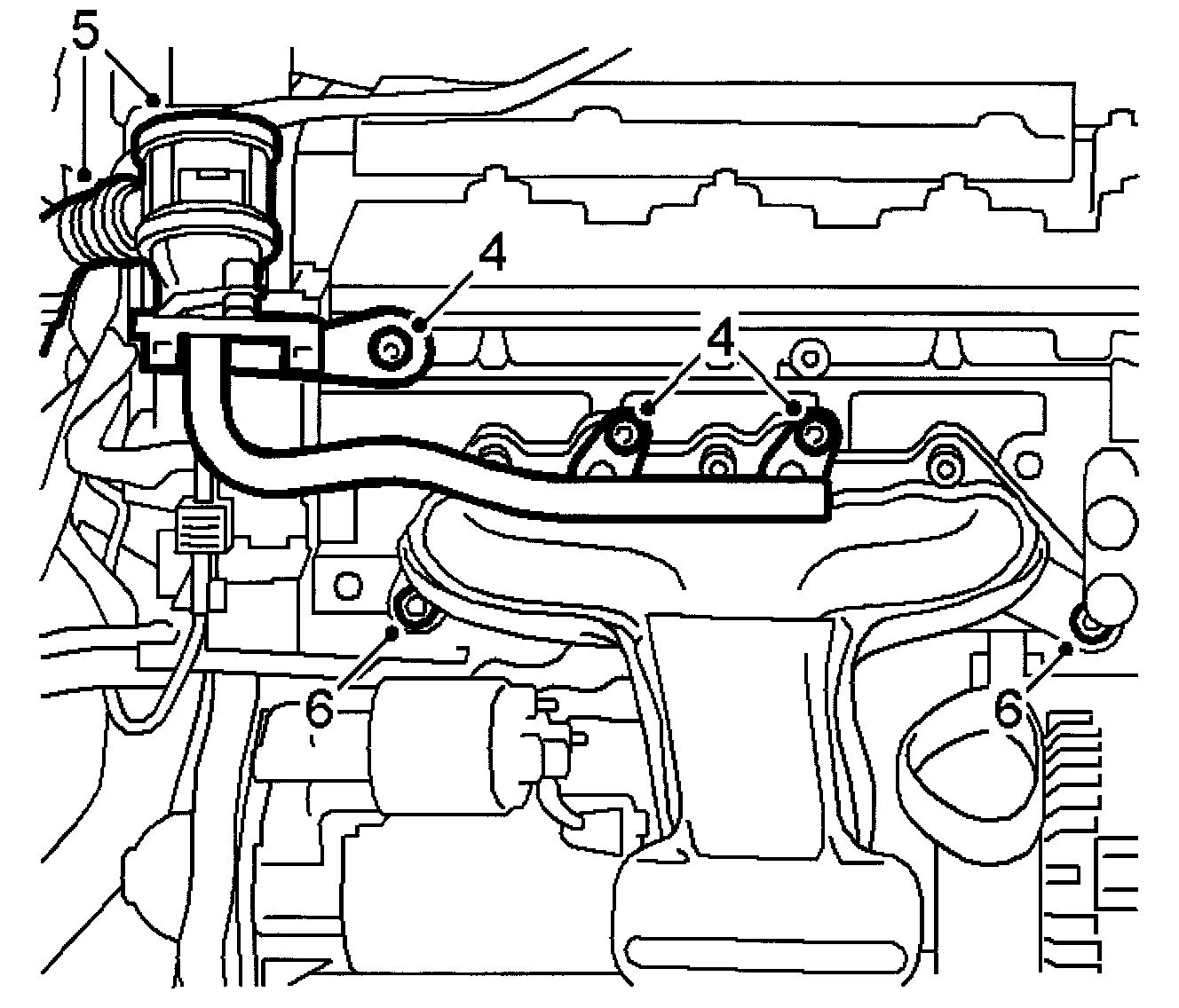 4. Undo the SAI pipe mounting on the cylinder head. Undo the connections to the exhaust manifold.