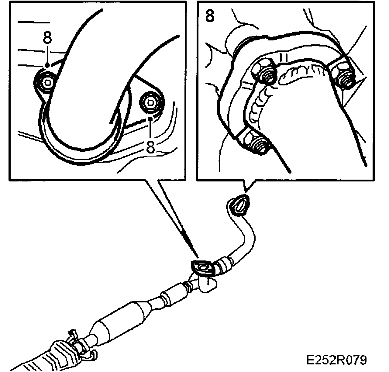 8. Fit the two outer nuts on the rear exhaust manifold.
