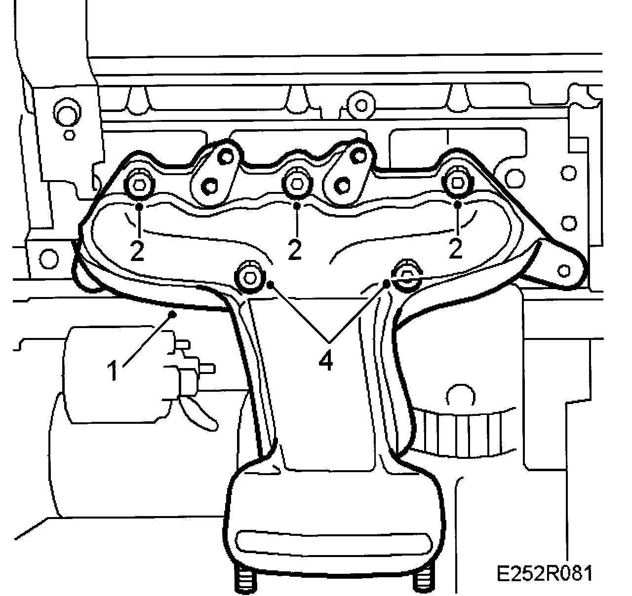 1. Clean the sealing surfaces and fit a new gasket for the rear exhaust manifold. Fit the rear exhaust manifold.