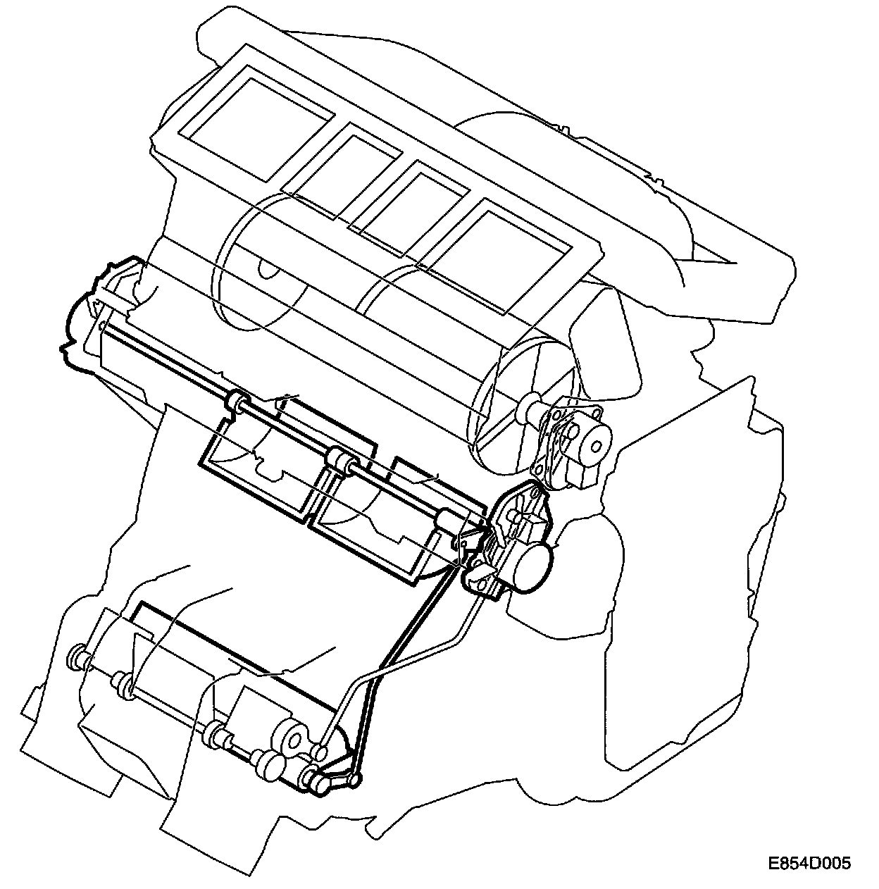 The driver's zone has one air-mixing flap, while the passenger zone has two, one for the front seat passenger and one for the rear seat passengers, which are connected by a link arm.