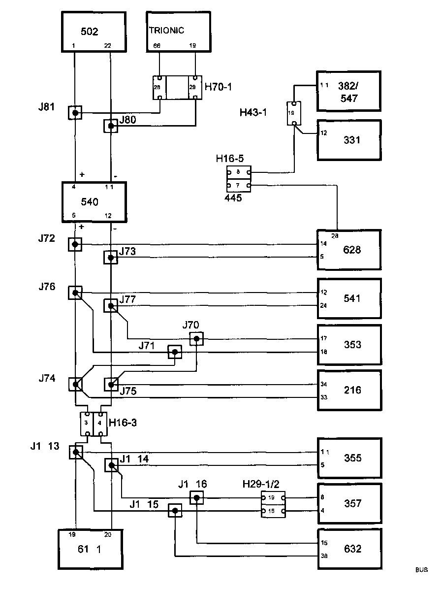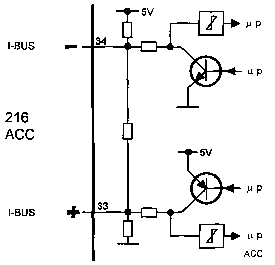 The bus is divided into the power train (P bus) and the instrument bus (I bus). Both busses are connected to the main instrument display panel (MIU). The busses are electronically separated.