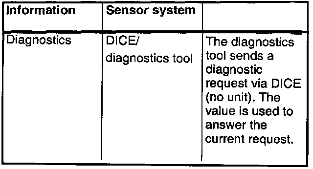 All communication between the diagnostics tool and the bus-connected systems goes via DICE. Irrespective of which system is being contacted, the diagnostics tool and DICE will check to see that all the bus-connected systems in the car are activated and communicating. If any of the bus-connected control modules are missing, the diagnostics tool will detect this. This means that all the bus-connected control modules are communicating correctly if there is no warning from the diagnostics tool.