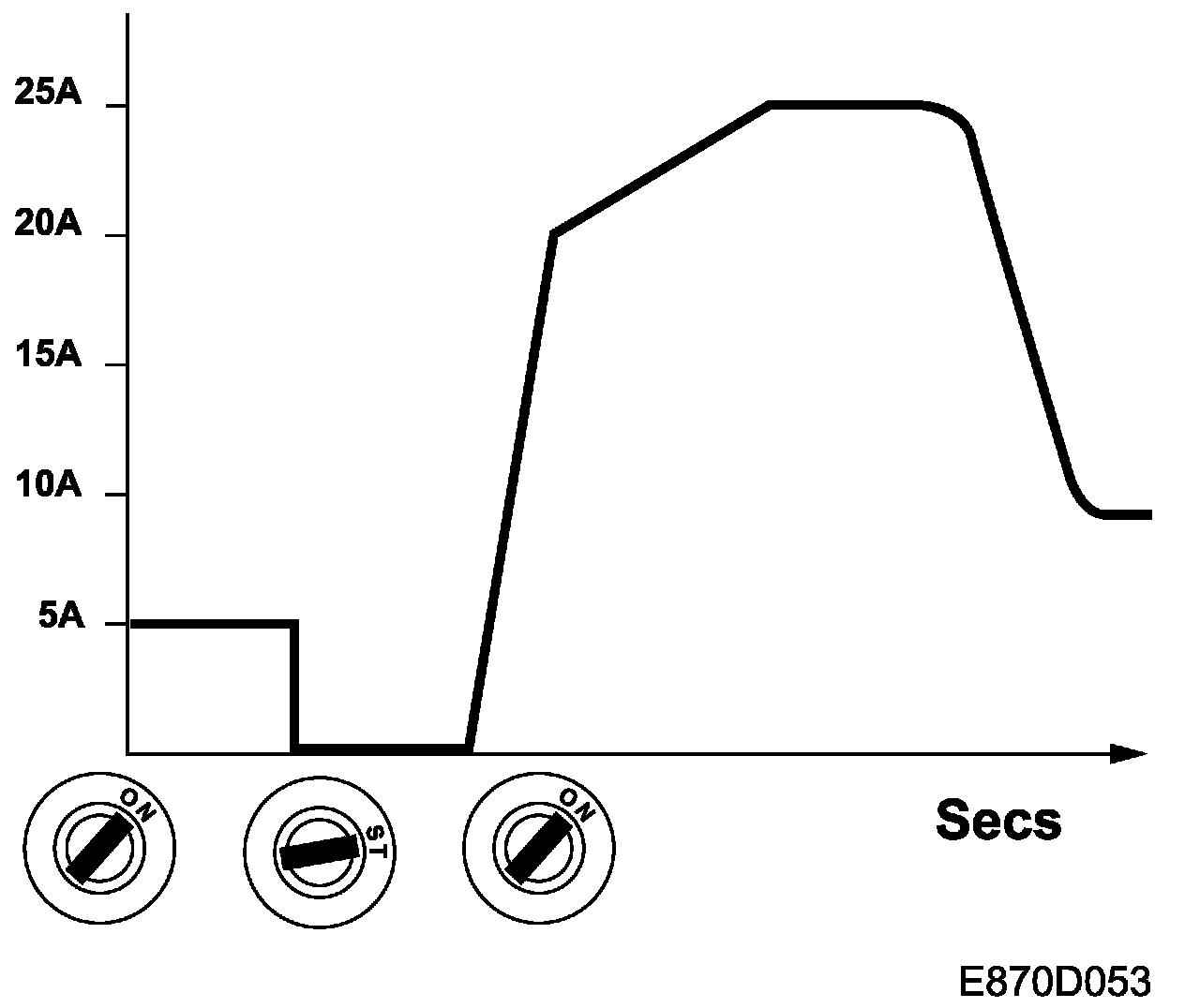 The warm start function means that air distribution is in the panel position and 20 A fan current immediately following start. The value increases slowly to 25 A.