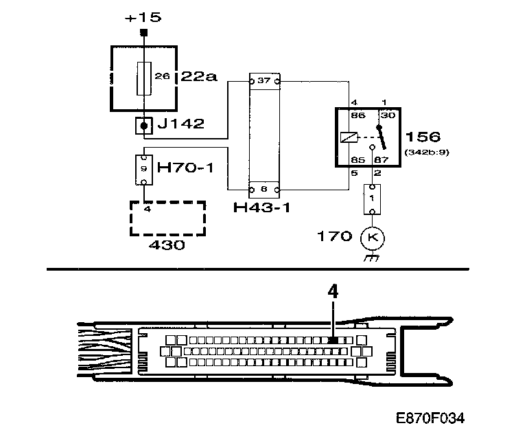 ^ Connect a jumper lead between pin 1 (30) and pin 2 (87) on the relay retainer.