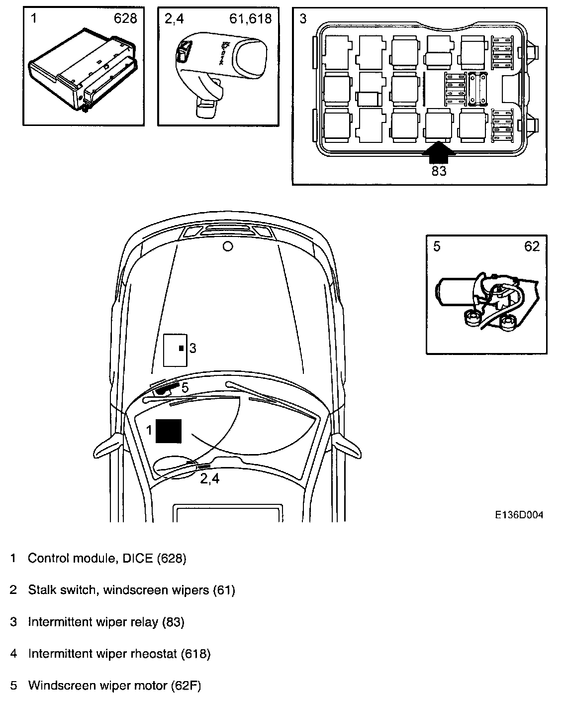 Main Components, Intermittent Wiper Operation, Windscreen (4D):