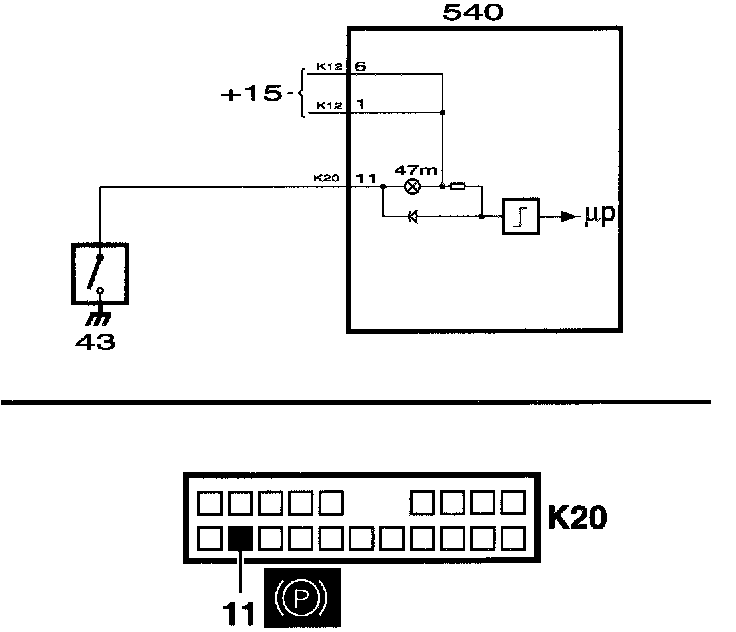 ^ Connect a test lamp to B+ and pin 11 of MIU K20.