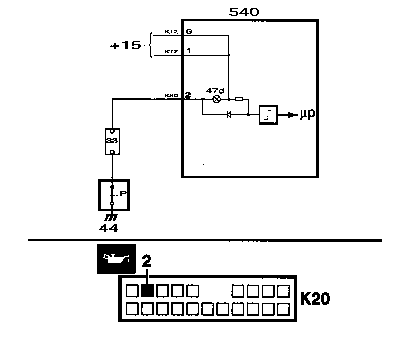 ^ Connect a jumper lead between pin 1 of the engine oil pressure sensor and a good ground.