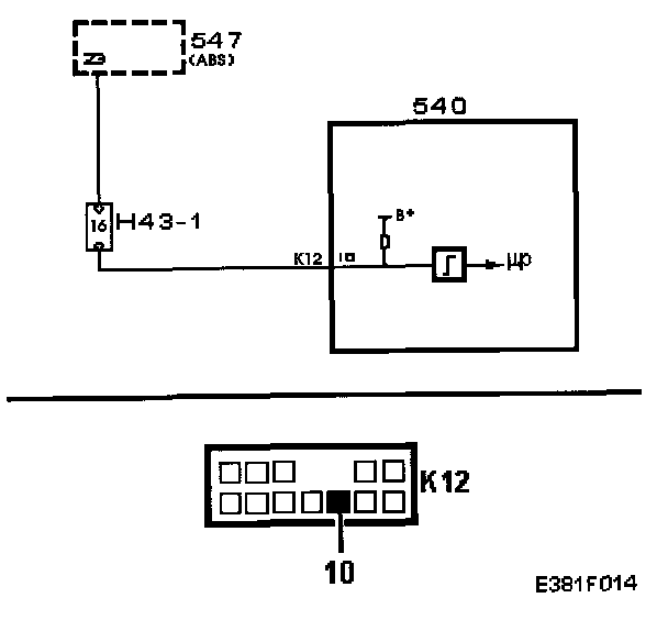 ^ Connect a test lamp to pin 10 of the MIU (K12) and a good ground.