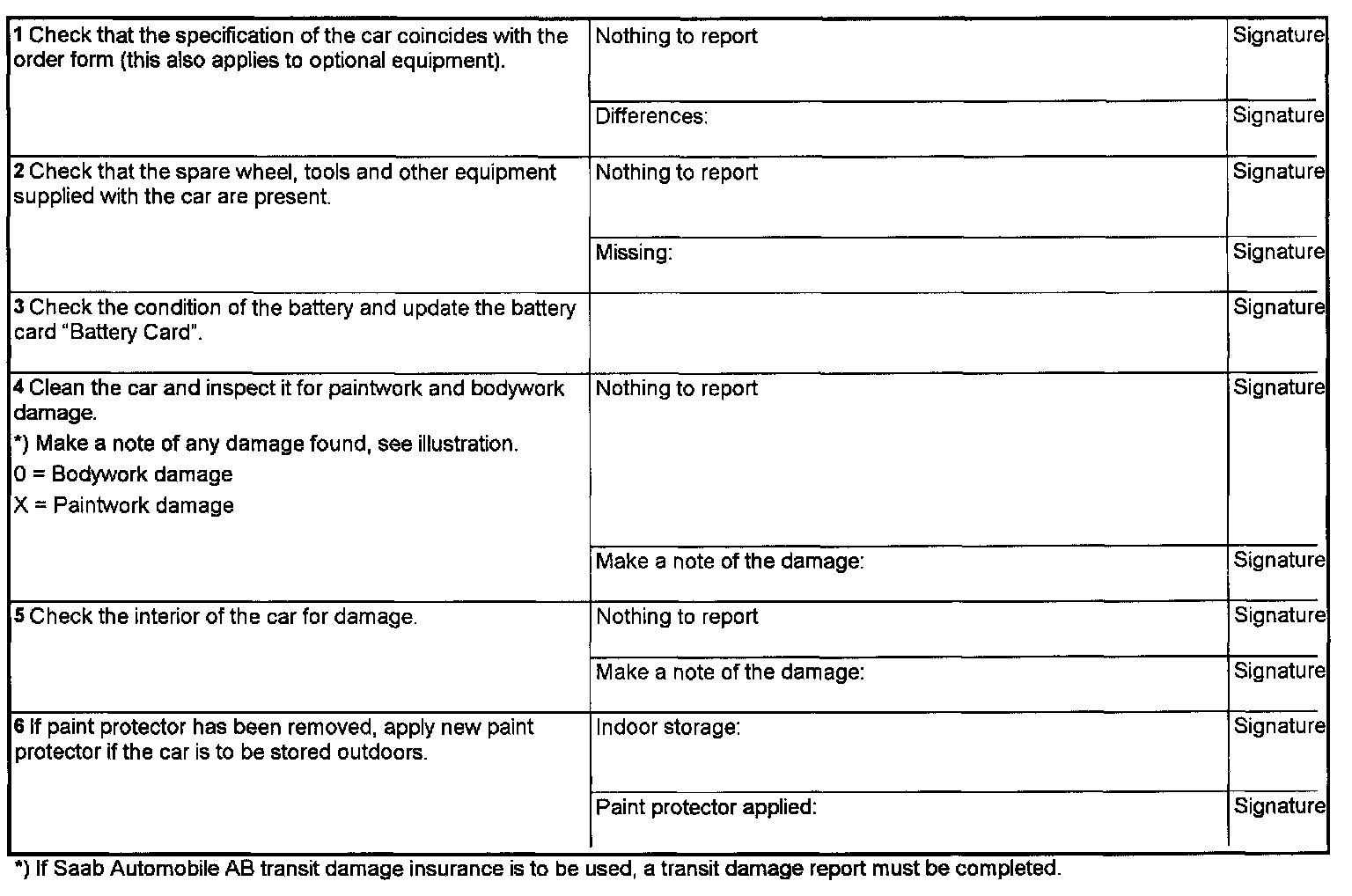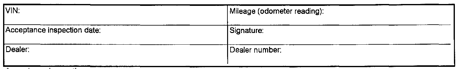 This form is to be used for acceptance inspection of the car with the specified chassis number. Fill in the form and keep it in the car until the car is made ready for delivery.