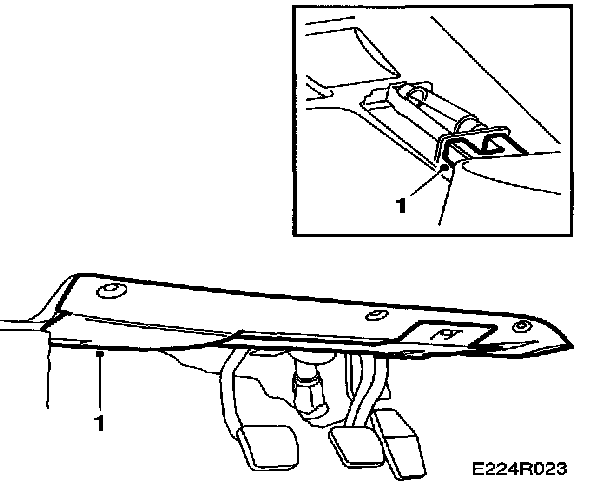 1 Remove the pedal bracket's cover by undoing the 3 screws and clip. Bend the cover down and carefully withdraw it. Mind the leads running to the data link connector and the wiring for the righting.