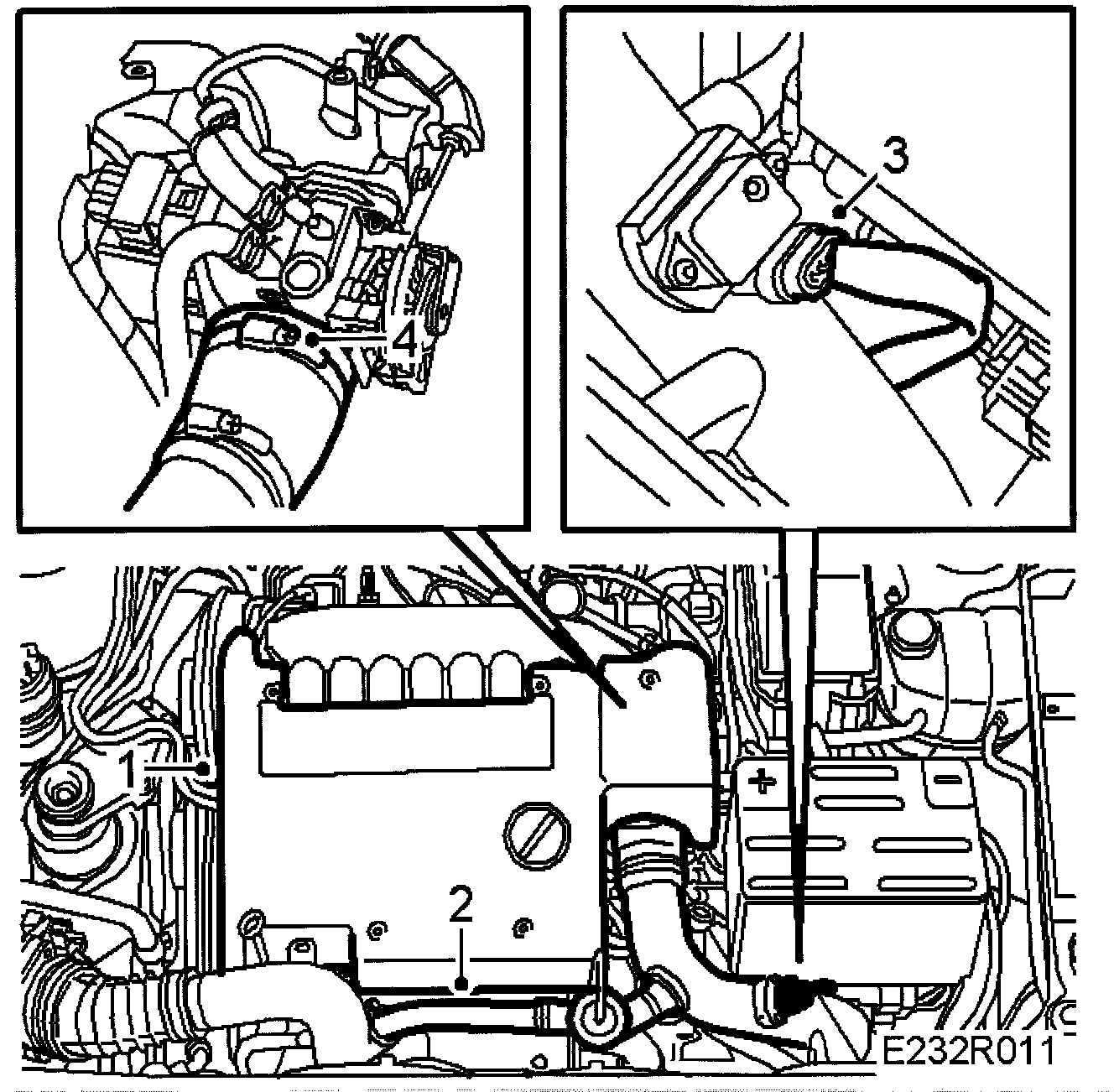 6 Plug in the connector for the temperature/pressure sensor on the charge air pipe.