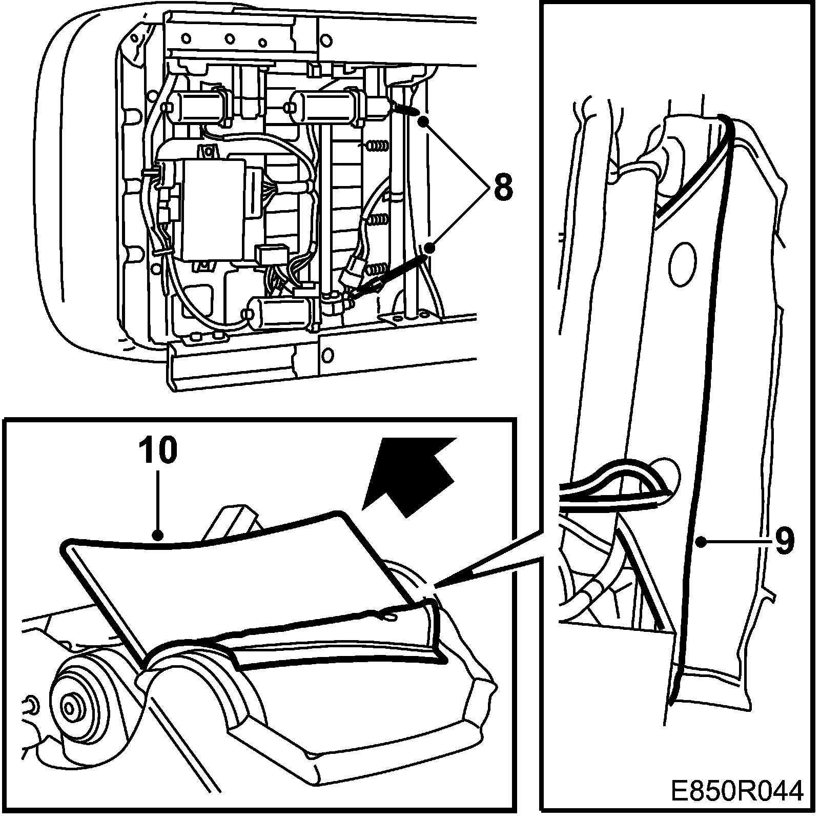 WARNING: Never repair and refit damaged seat upholstery. The strength of the seams is carefully calculated and must not be altered.
