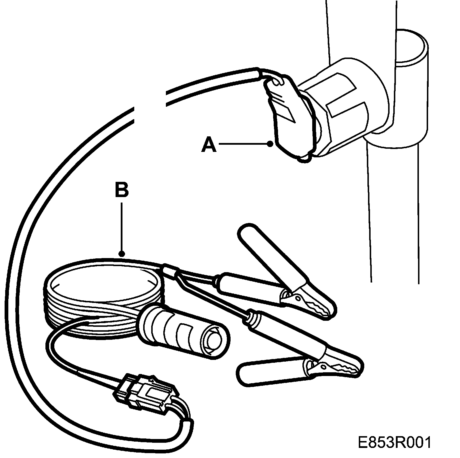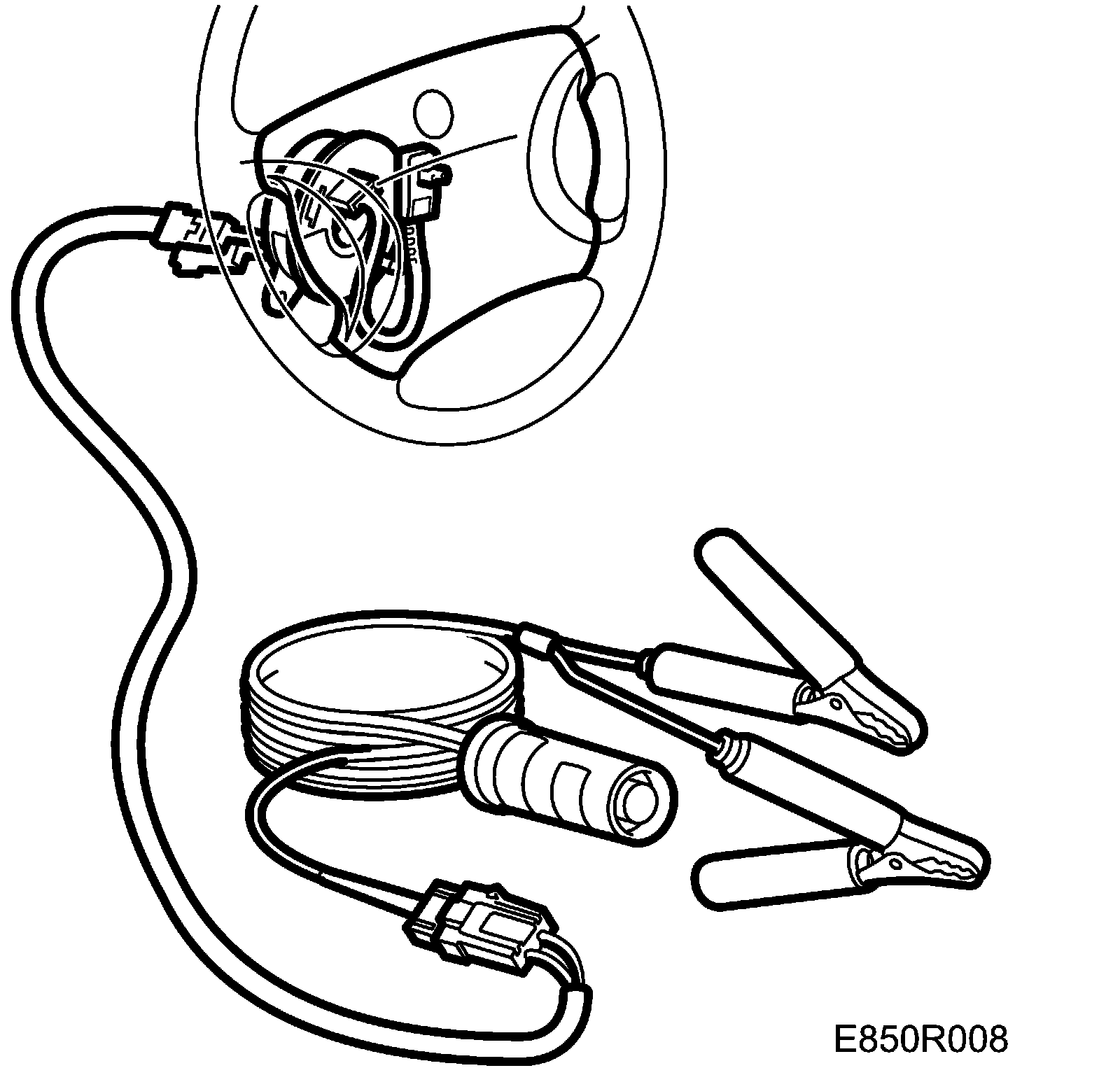 ^ The detonating device consists of an approximately 10-metre long two-conductor cable with a pushbutton, battery terminal clamps and connectors for plugging into the wiring harnesses.