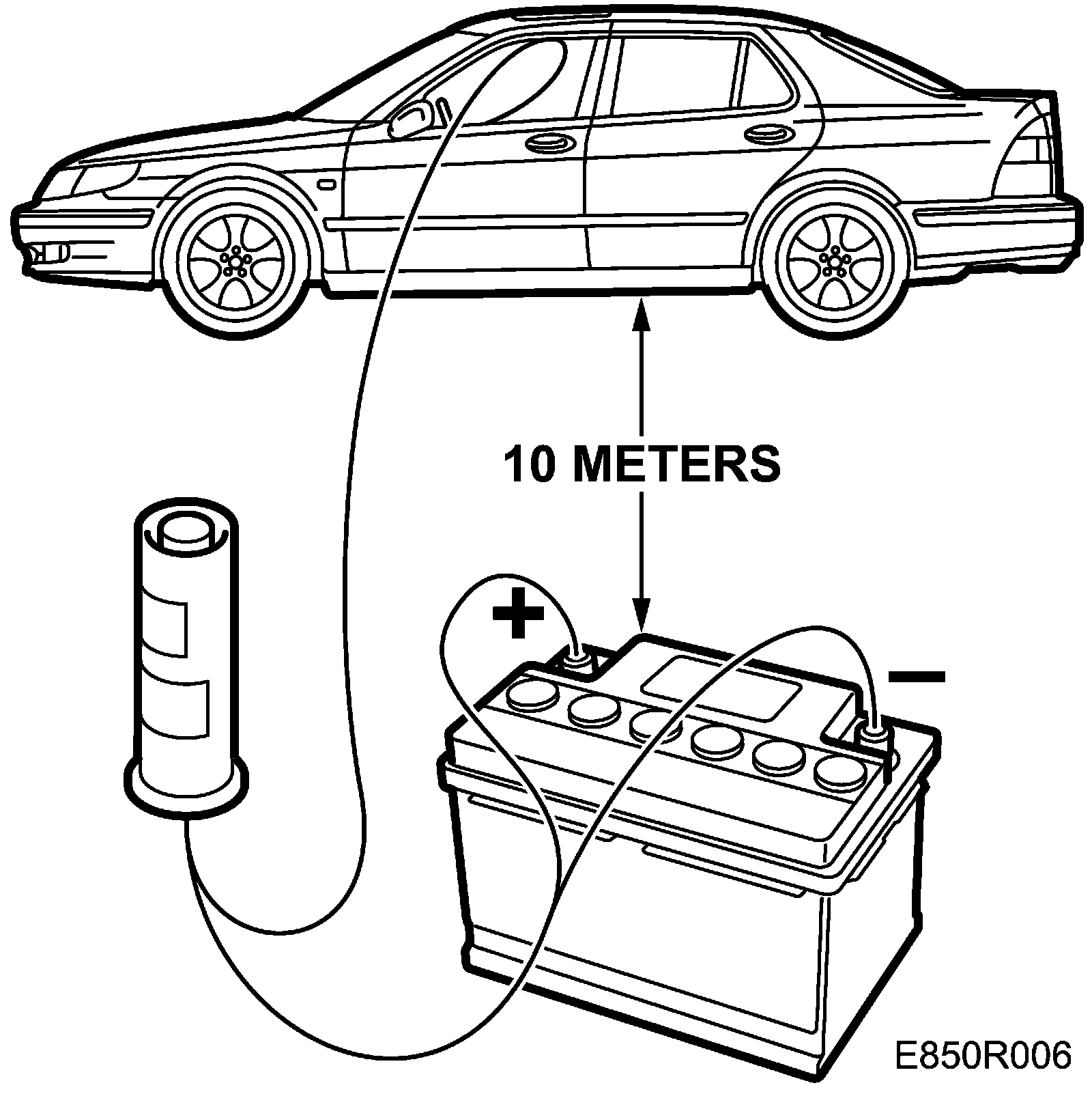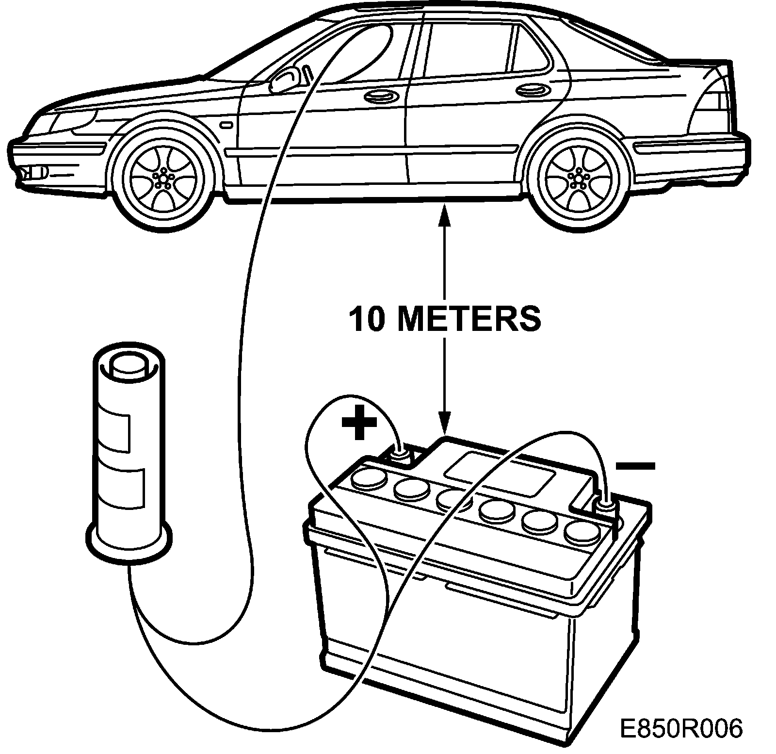 8. Place a battery about ten metres away from the car. Connect the detonating device to the battery.