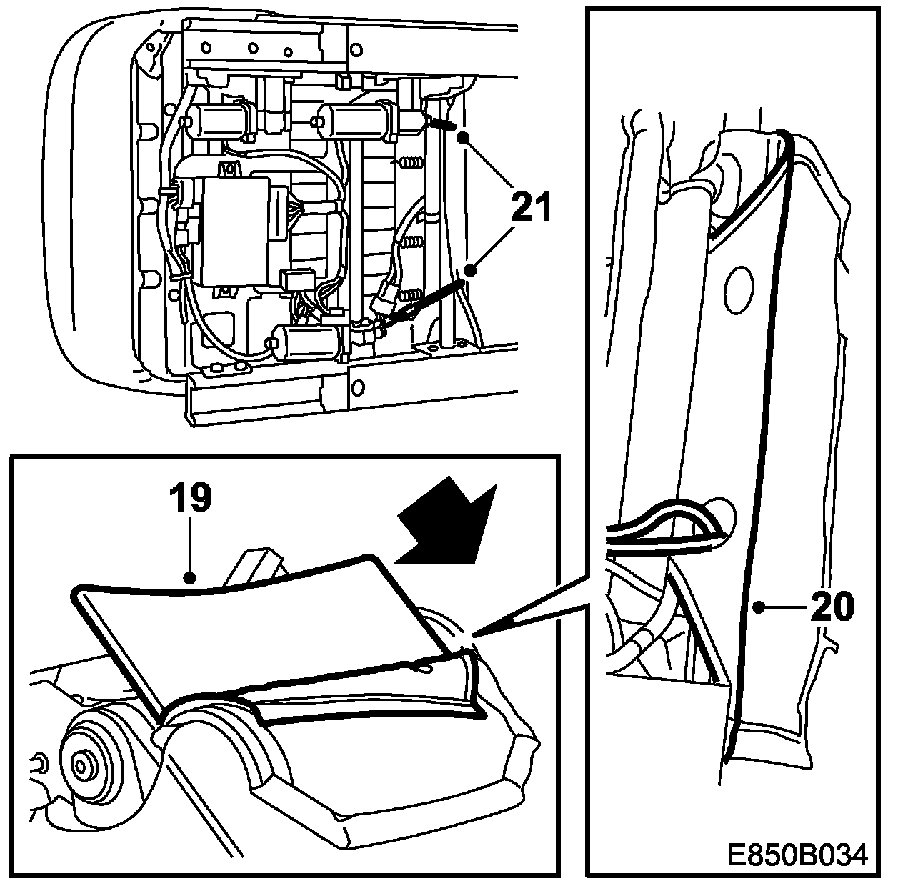 21. Fasten the straps on the bottom of the backrest upholstery under the seat cushion.
