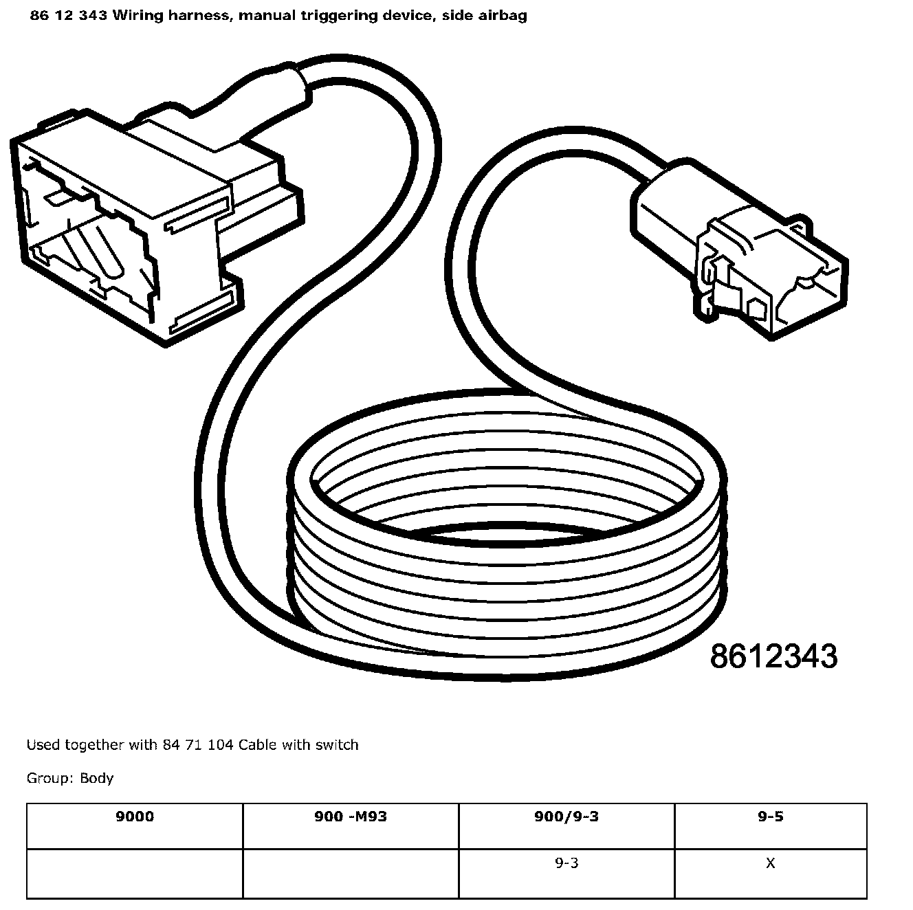 86 12 343 Wiring Harness, Manual Triggering Device, Side Airbag:
