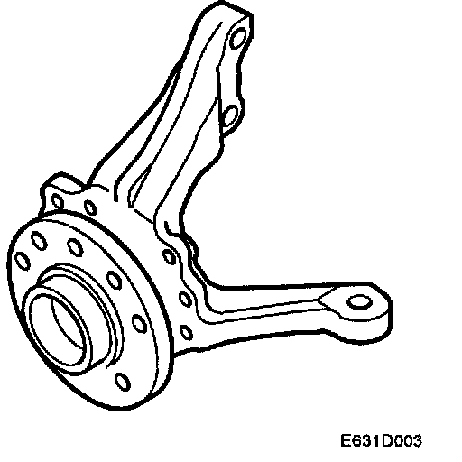 The steering swivel member is the main component of the wheel bearing assembly and consists of a bearing housing with steering arm, mountings for the MacPherson strut, ball joint and outer track-rod end. The steering arm is curved inwards and causes the front wheels to assume slightly different angles when cornering so that the car will be easier to steer round bends.
