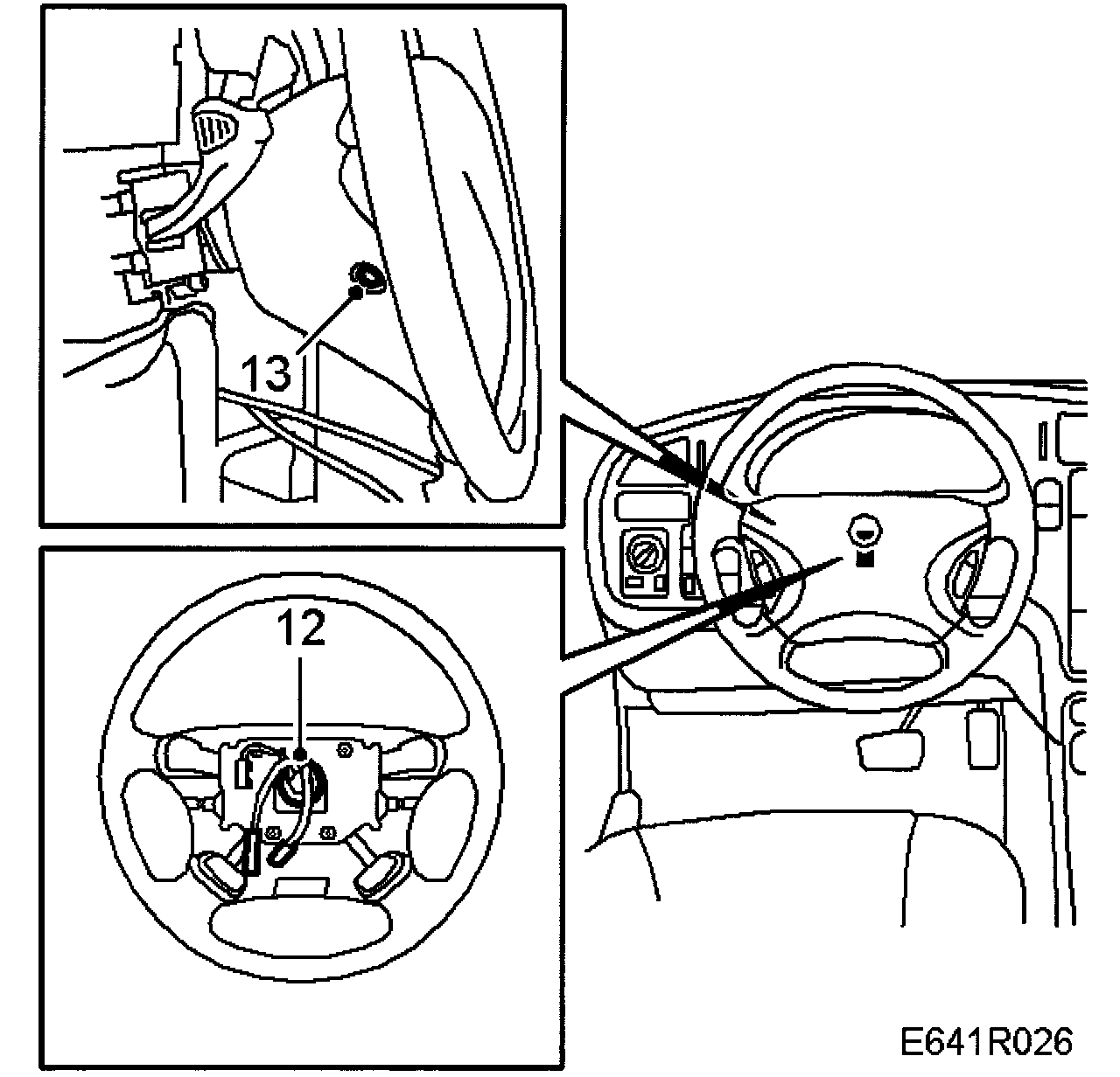 2. Remove the steering wheel airbag module. The airbag module must be stored with the metal casing face down