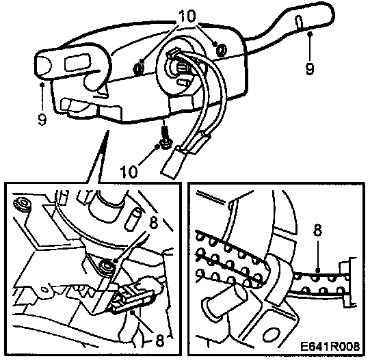 8. Remove the holder for the coil spring unit and the steering wheel stalk switched