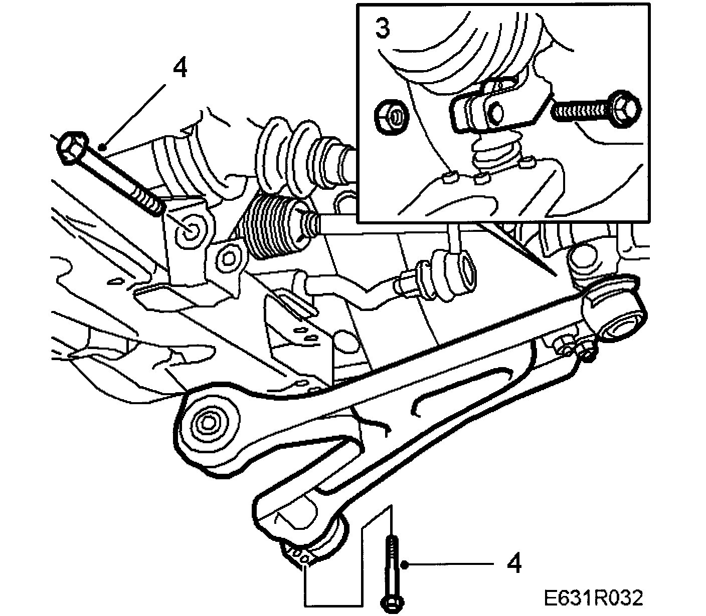 4. Position the suspension arm against the subframe and insert the bolts in the front and rear attachment points.