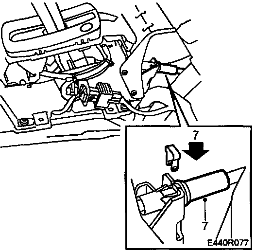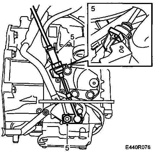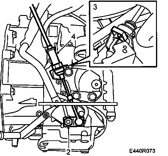 NOTE: Check the position of the cable at the selector lever housing, the elevation on the cable ferrule should point up.