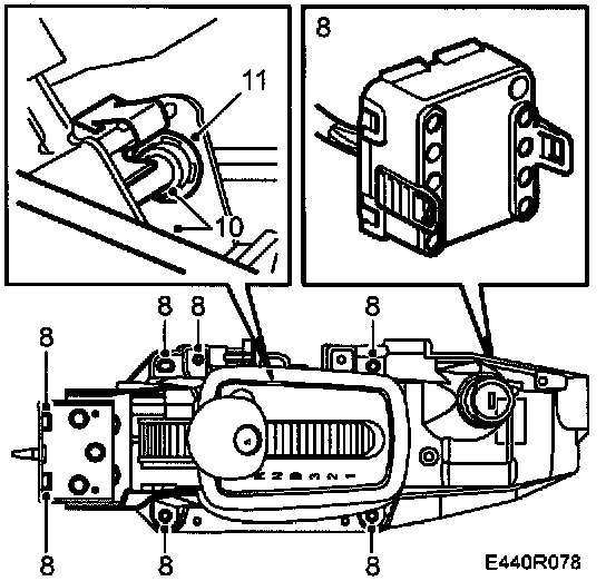 10. Lift up the selector lever housing and unplug the electrical connection from the ignition switch. Remove the air duct.