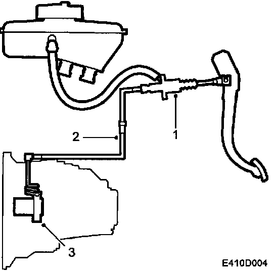 Clutch operation is hydraulic and entirely self-adjusting. The mechanism consists of a master cylinder (1), a clutch pipe (2) and a slave cylinder (3).