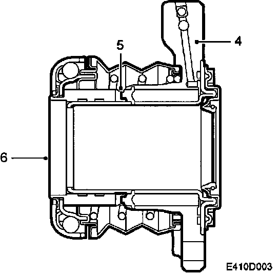 The master cylinder is mounted in the bulkhead wall and linked to the clutch pedal by a piston. The slave cylinder is an integrated unit mounted in the clutch housing and consists of a cylinder housing (4), a split piston (5) and a fixed release bearing (6). The slave cylinder cannot be dismantled. The hydraulic pressure from the master cylinder is led in and presses on the seal which then forces the piston and release bearing against the pressure plate. There is a spring mounted between the cylinder housing and release bearing which ensures that the release bearing is always held against the pressure plate, reducing play in the clutch pedal.