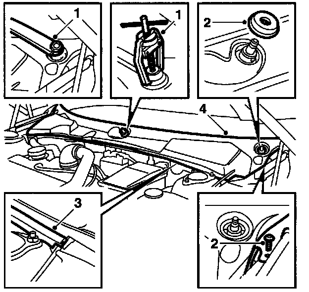 3 Loosen the rubber moulding along the edge of the bulkhead but let it rest on the wings.