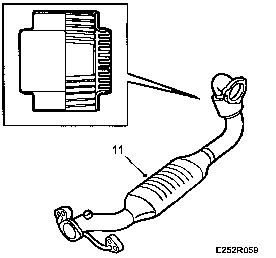 IMPORTANT: The flexible section at the front of the exhaust system should not be bent out of line by more than 7°, i.e. if the front exhaust system is allowed to hang, it must not bend more than the sag caused by its own weight.