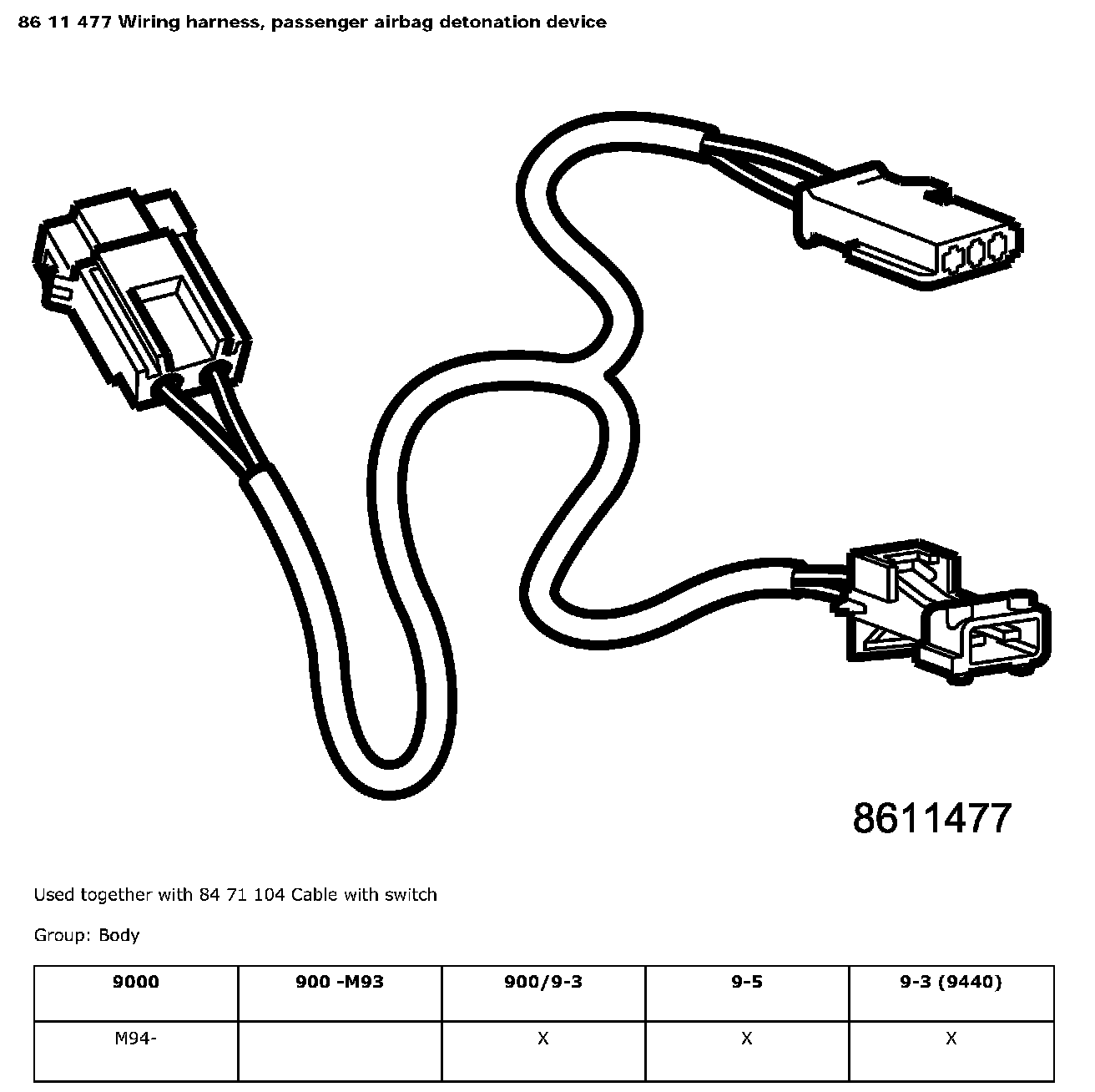 86 11 477 Wiring Harness, Passenger Airbag Detonation Device: