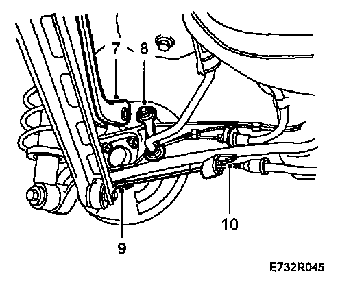 10. Fit the bolt securing the handbrake cable bracket to the longitudinal link.