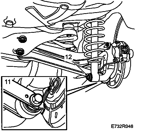 12. Remove the bolts securing the longitudinal link to the car body and lower away the link with hub and brake disk