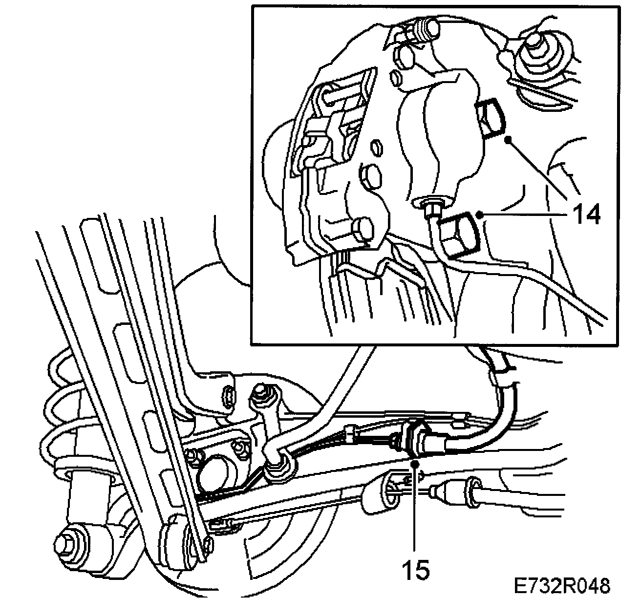 8. Unbolt the handbrake cable bracket from the longitudinal link.