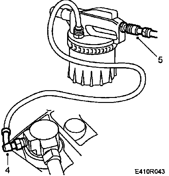 7. Fit adapter, Cooling System Tester, 30 05 451 to the brake fluid reservoir. Use two sealing rings 10-45 43 997 to ensure the seal of the cap.