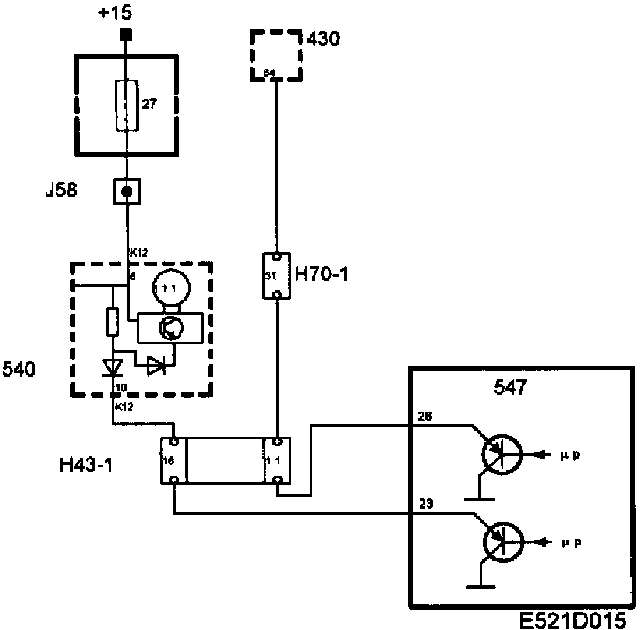 Several other systems in the car need to receive wheel-speed data. Because the ABS control module is not connected to a bus, it has a wheel-speed output for each wheel (only the rear left and right front are connected at present). A transistor in the ABS control module grounds the respective outputs 29 times per wheel revolution. The voltage across the output is monitored by the systems receiving the data.
