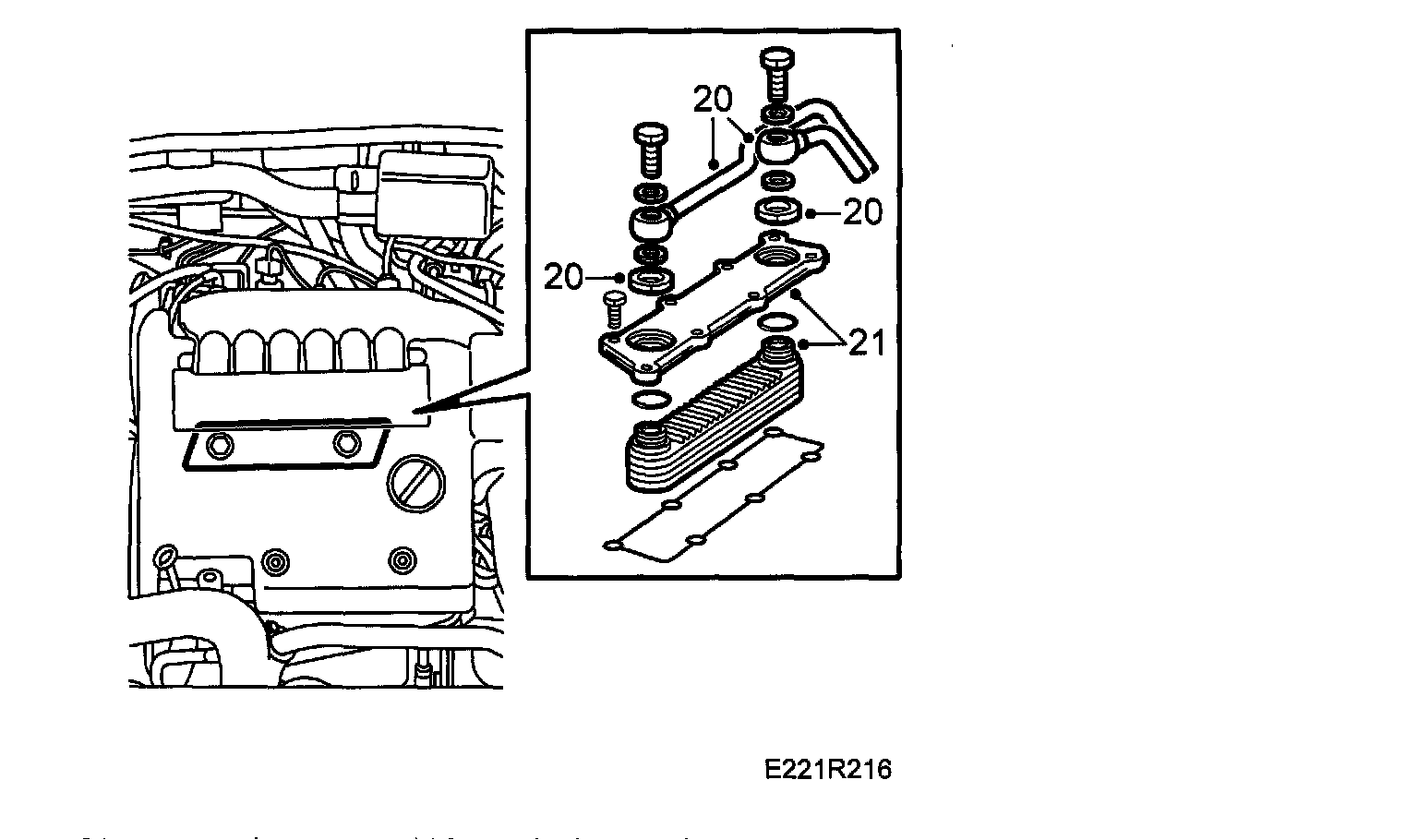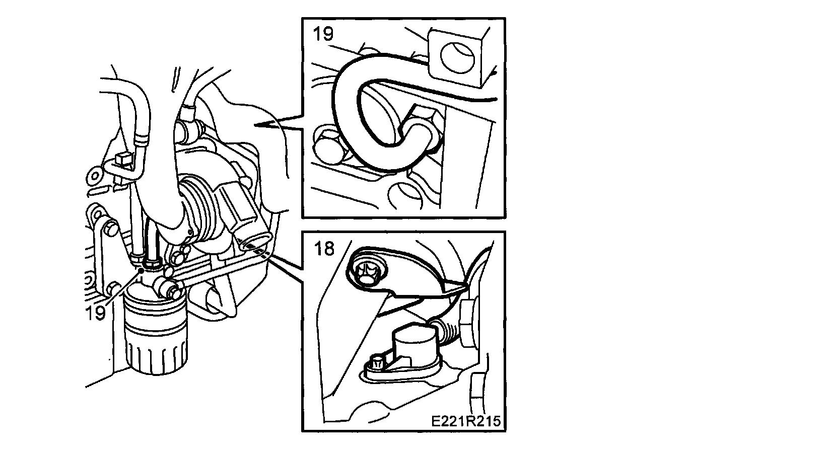 19. Detach the heat exchanger's oil pipes from the oil filter adapter and cylinder block.