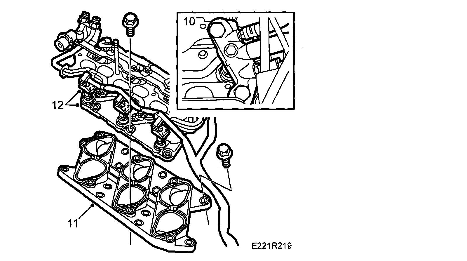10. Fit the coolant bridge. Coat the bolts with part No. (10) 74 96 284.