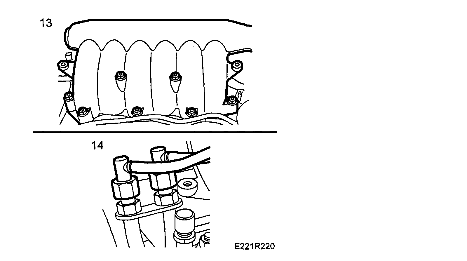 17. Connect the vacuum hoses and plug in the pressure sensor's connector to the upper intake manifold.