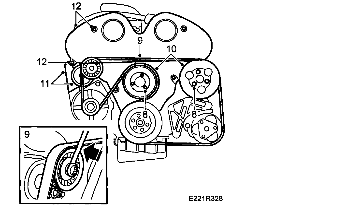 Belt pulley/coolant pump: 8 Nm (6 ft. lbs.).