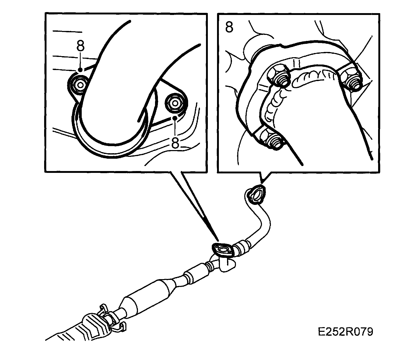 Important: The flexible section at the front of the exhaust system should not be bent out of line by more than 7°, i.e. if the front exhaust system is allowed to hang, it must not bend more than the sag caused by its own weight.