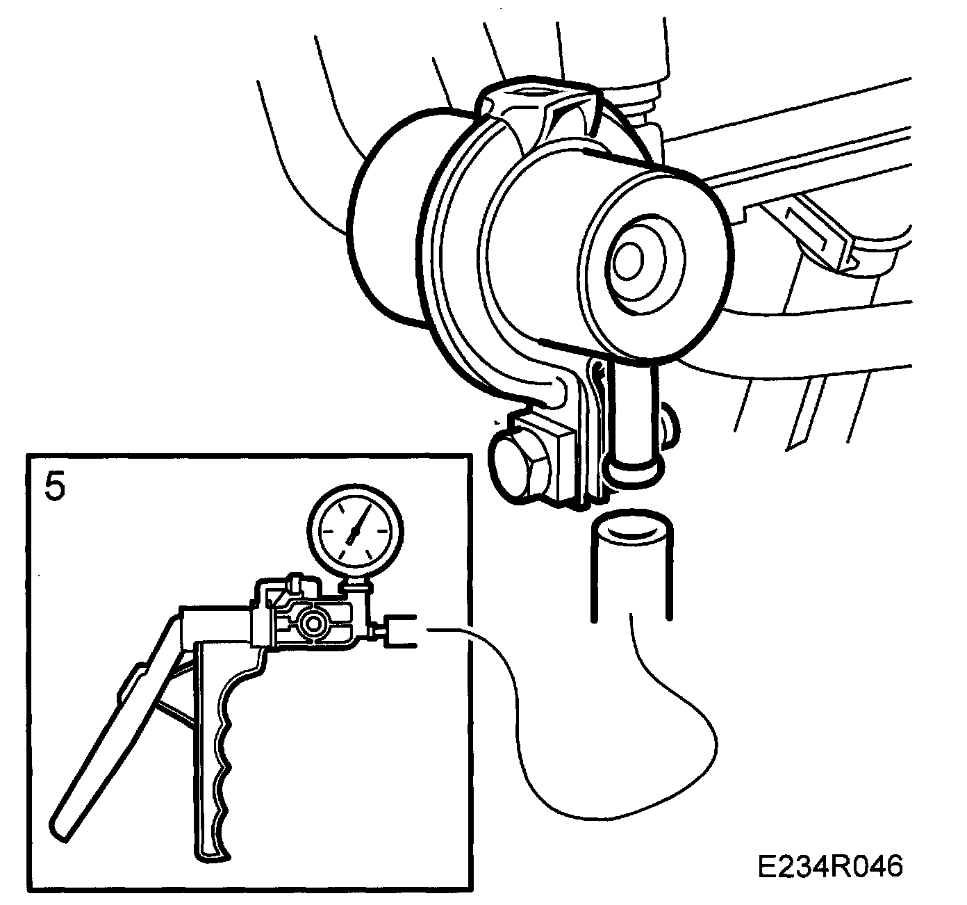 5. Detach the pressure regulator vacuum hose. Connect the vacuum pump 30 14 883 Pressure/vacuum pump to the coupling on the pressure regulator.
