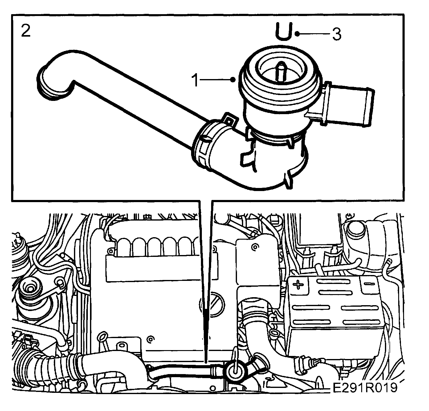1. Undo the hose clip on the turbocharger delivery pipe and the vacuum hose to the valve.