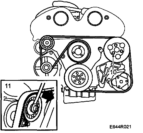 11. Take the strain off the belt tensioner and fit the belt. Ensure the belt is fitted correctly on all the belt pulleys.