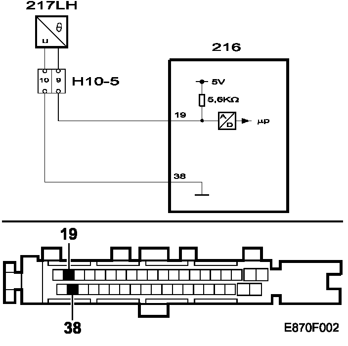 - Open circuit or short to B+ on pin 19 >4.9 V.