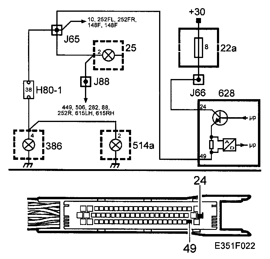 If a lamp with too high a rating is fitted, diagnostic trouble code B1735 can be generated.